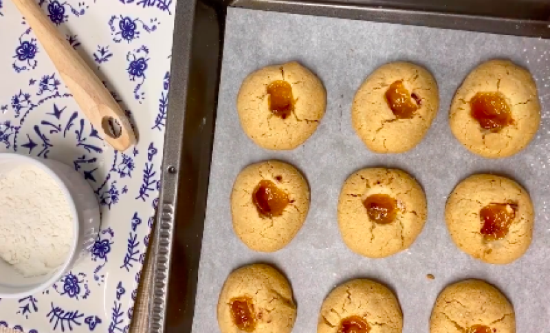 - Rellena cada hueco con un poco de mermelada de albaricoque.